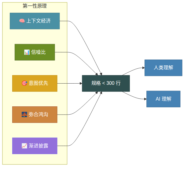 LeanSpec 不只是工具链,它建立在五条第一性原理( First Principles )之上,指导每一个设计决策: